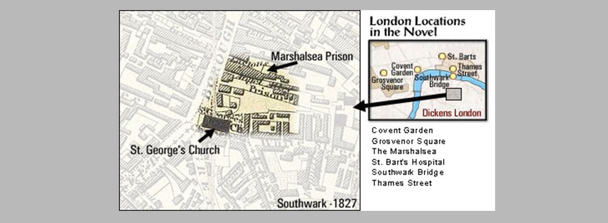 Map showing location of Marshalsea Prison. Credit to David Purdue’s Charles Dickens Page.