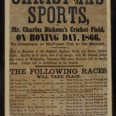 In this article, Lucinda Dickens Hawksley discusses one of her favourite items in the museum’s collection; a poster printed in 1866 advertising a day of “Christmas Sports at Mr Charles Dickens’s Cricket Field”.