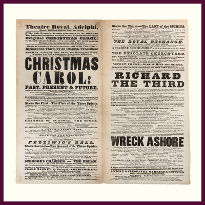 This playbill from February 1844 advertises the very first adaptation of 'A Christmas Carol.' Discussed by Cindy, Frankie and Emma in episode one.