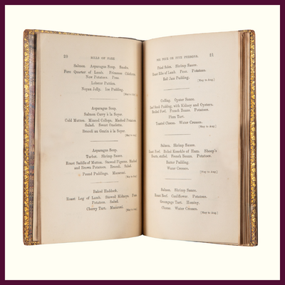 This is a recipe book, written by Charles Dickens's wife, Catherine, under the pen-name 'Lady Maria Clutterbuck.'