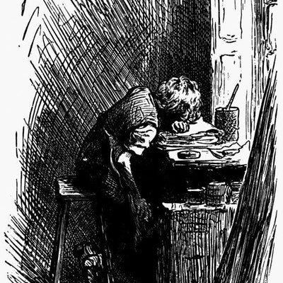 In this excerpt from 'The Old Curiosity Shop', Dick Swiveller observes the Brasses’s badly treated young servant girl having a meagre meal.